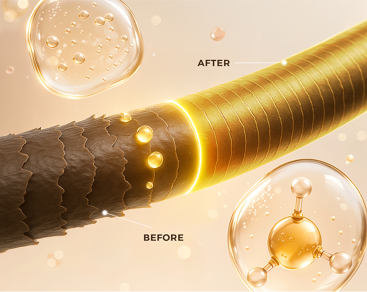 Rich in omega-7, vitamin E, and squalene, macadamia oil tames frizz, strengthens hair, and protects against damage, leaving your strands soft and healthy.