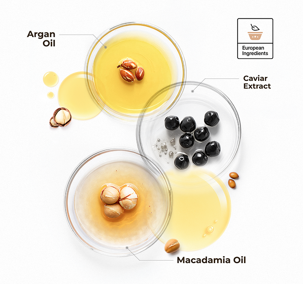 Rich in antioxidants and omega-3 fatty acids, caviar extract boosts elasticity, fights hair aging, and deeply hydrates—restoring shine for radiant hair.