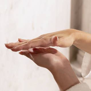 1. Dispense a small amount into the palm of your hand