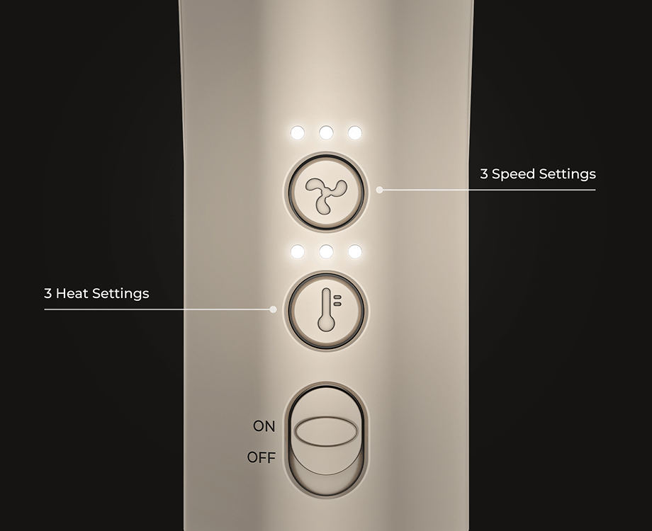 Custom styling made easy with 3 heat and 3 speed settings that adapt to your hair’s unique needs.